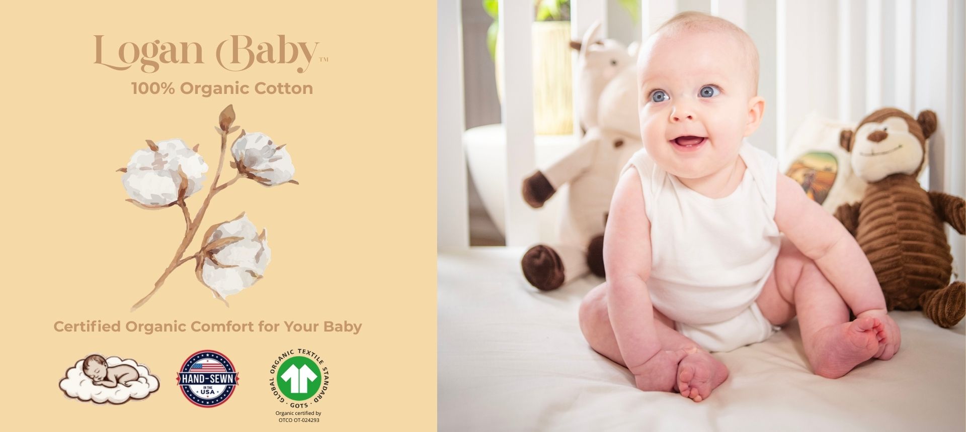 At Logan Road, we’ve chosen to specialize in certified organic fabric for our 100% organic cotton baby crib sheets because we believe your little one deserves nothing less than the softest, most chemical-free start in life. As parents ourselves, we care deeply about what touches our babies skin. That’s why every sheet is assembled and handmade with care in the USA, combining quality, comfort, and durability you can trust.